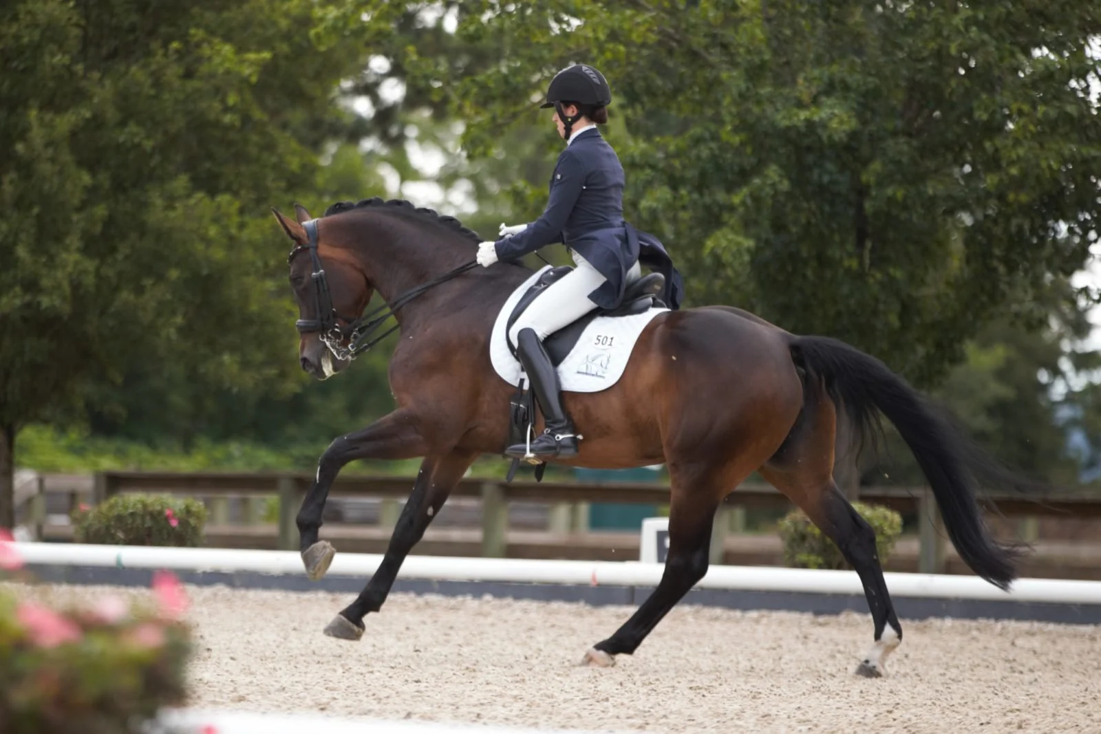 In 2018, Harlequin R showed at Third Level with scores to 72.628% and would have likely ranked in the top 10 in the USDF Horse of the Year standings, but Alyssa failed to enter Harley in enough tests to qualify for the ranking. In 2017, she was ranked #7 in the USDF Horse of the Year standings with a median of 74.412% with scores to 79%. In 2019, as only a year old, she is already ready for Prix St Georges and Intermediate I, although Alyssa prefers to only show her 7 year olds at Fourth Level. Alyssa believes that Grand Prix will be her best level.