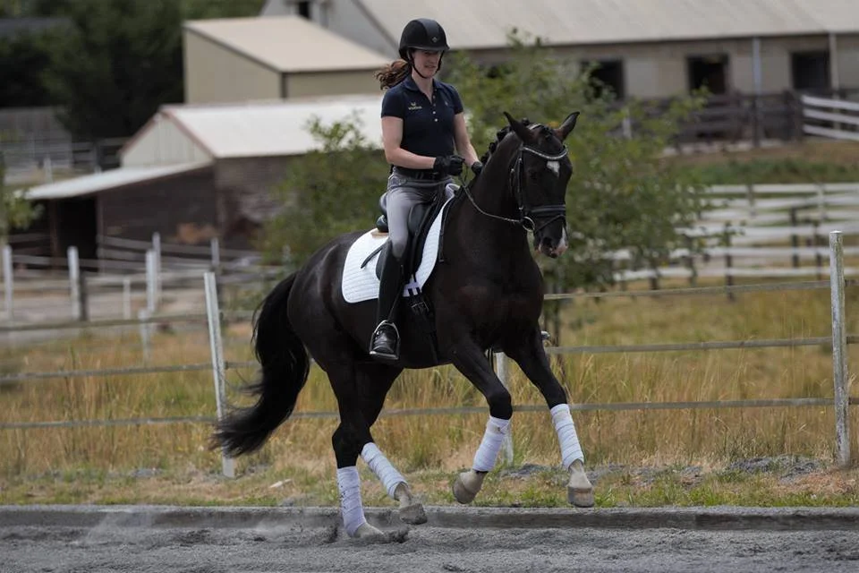 Samson R is the full brother to Selestial R, and he is a really eye catching black horse with 4 socks and a star and snip on his face. From what Alyssa has seen of his thus far, she believes that he’s even nicer than Selestial R, which is incredibly exciting! He has the same light footed and elegant movement that Selestial R has, but with maybe a little more power and a little more expression in his gaits. His temperament appears to be outstanding as well: kind, sensitive, and a heart of gold. In 2018, he was ranked #18 in the USDF Horse of the Year standings at First Level with a median of 72.574% with scores to 77.059%. In 2019, he will compete at Third Level.